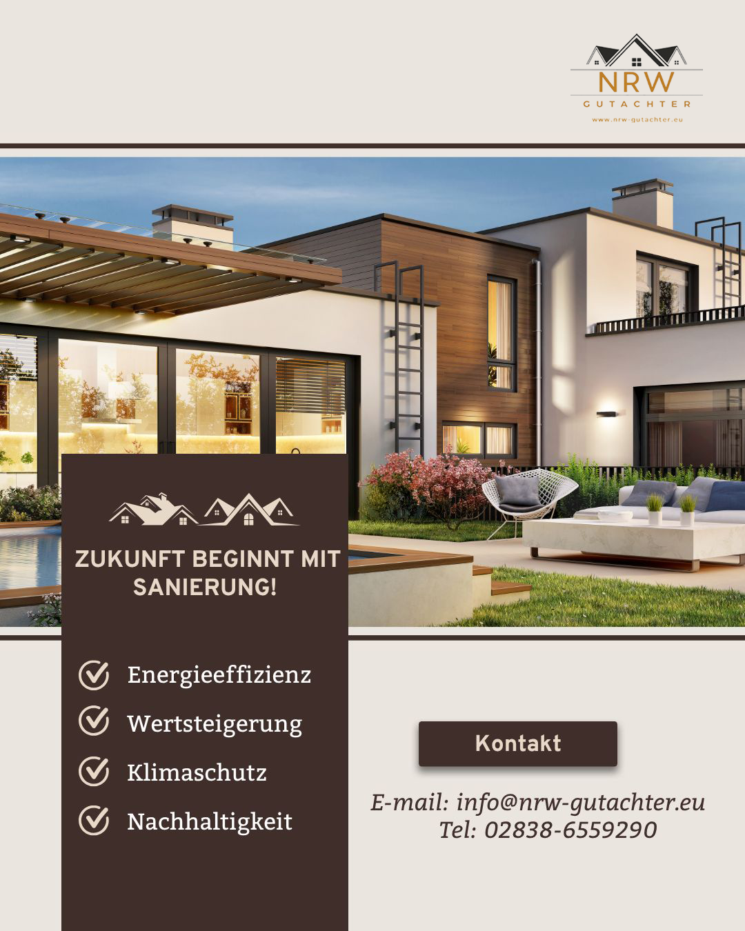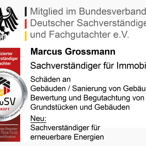Immobilienbewertung und Schadenbegutachtung von Immobilien und Grundstücken, sowie im Fachbereich erneuerbare Energien (WDVS - Wärmedämmverbundsysteme - Photovoltaikanlagen - Windkraftanlagen - Biokläranlagen (Kunstoffbehälter) - energetische Sanierungsarbeiten an Immobilien)